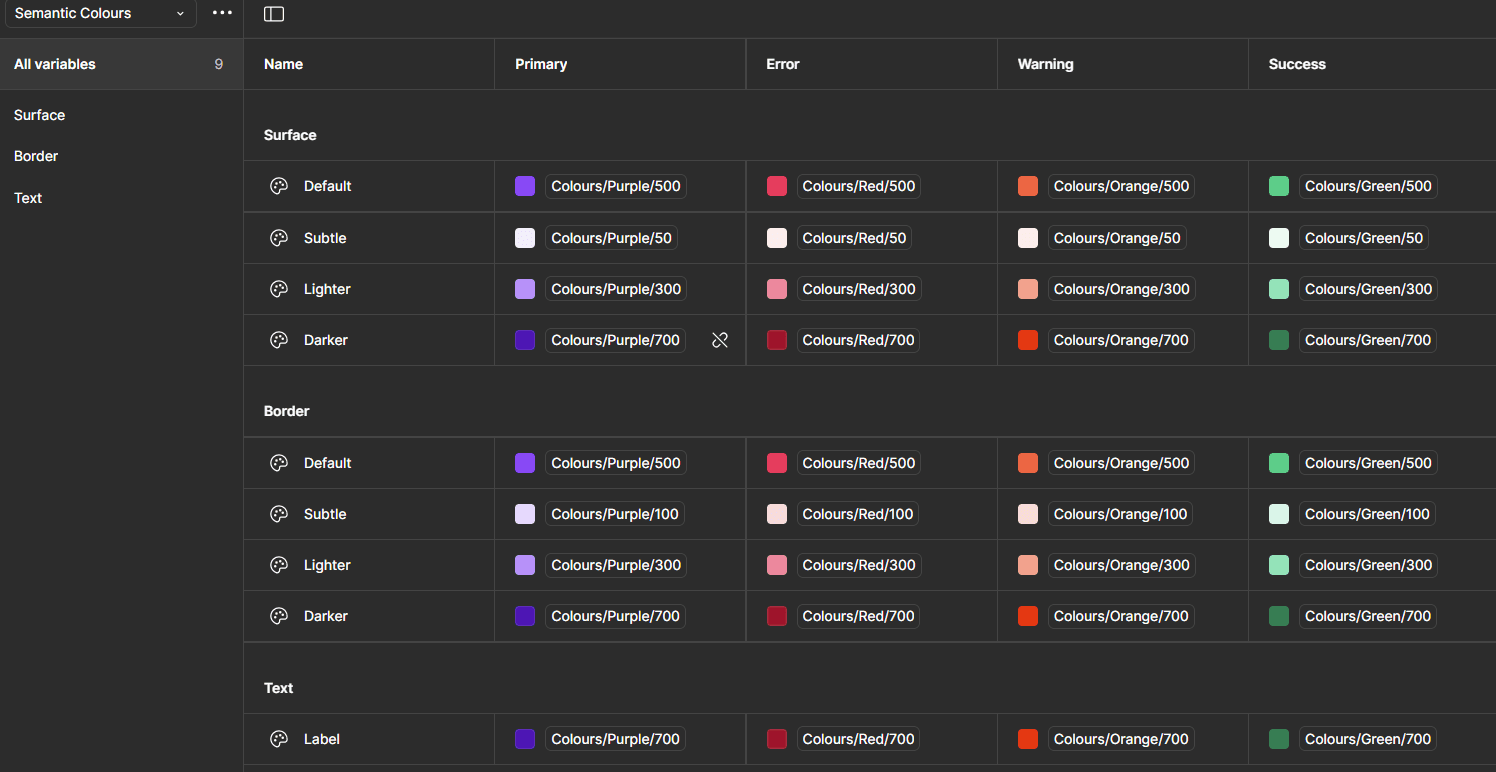 I built a fully tokenised, variable-based design system in Figma—one that supported every layer of the UI, from colours and spacing to inputs, controls, and data states. Each component was built with system logic in mind